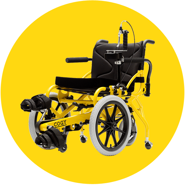 コギーとは、自転車のようにペダルがついた「足こぎ車いす」です。
